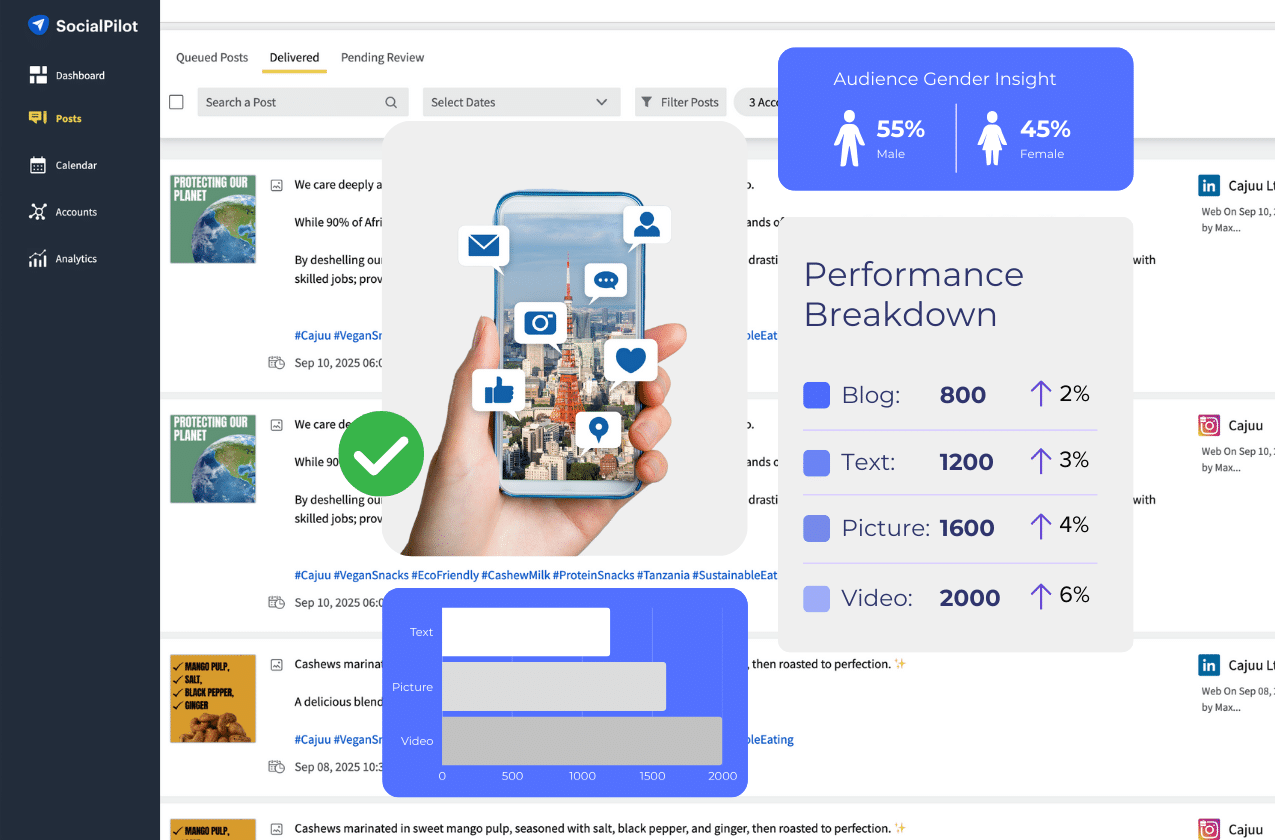 Our simple dashboard makes it easy to review and approve posts before they go live. You stay in control of your content without the stress of managing every detail.
