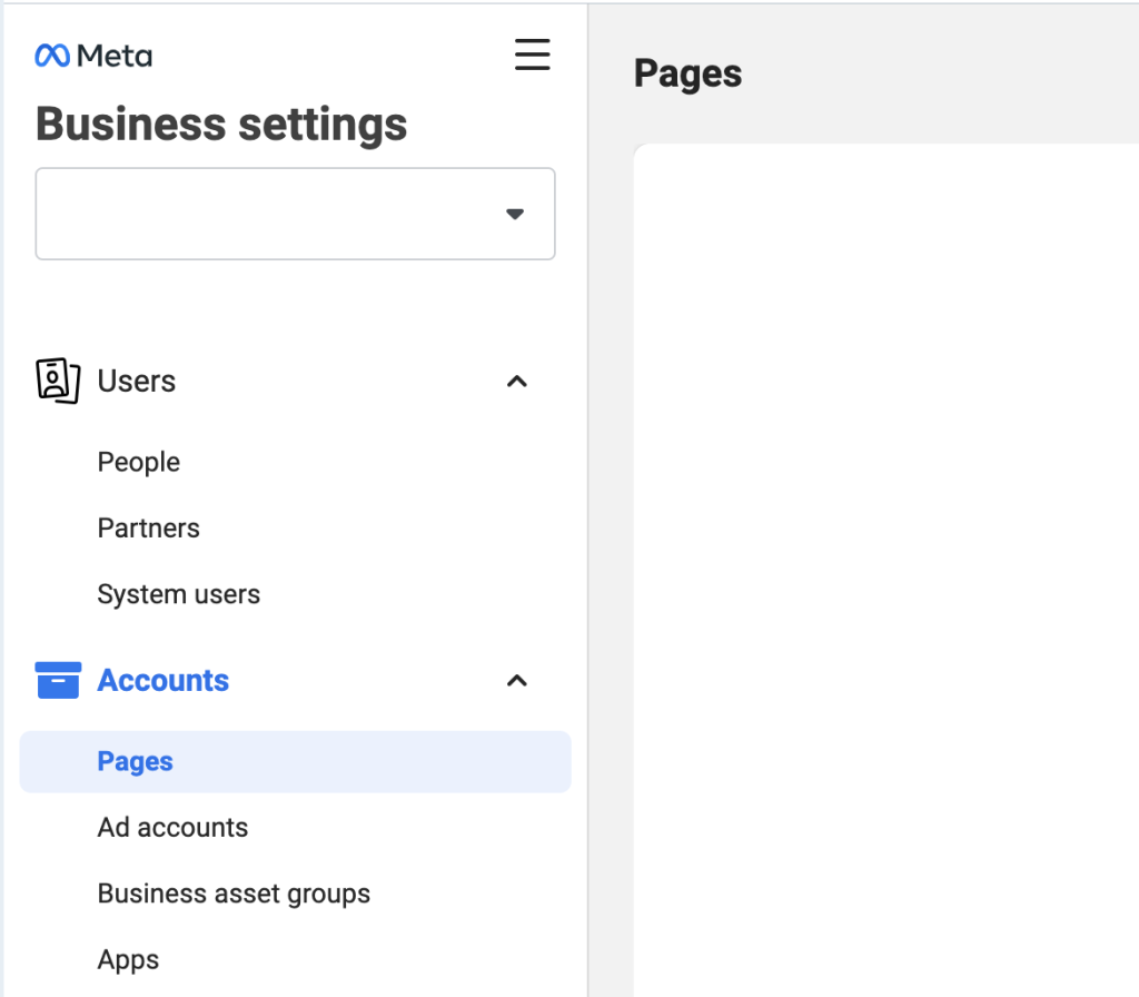 Step 1: First, click on “Pages” on the sidebar in business settings. There, you’ll see all the pages added to your Business Manager account.