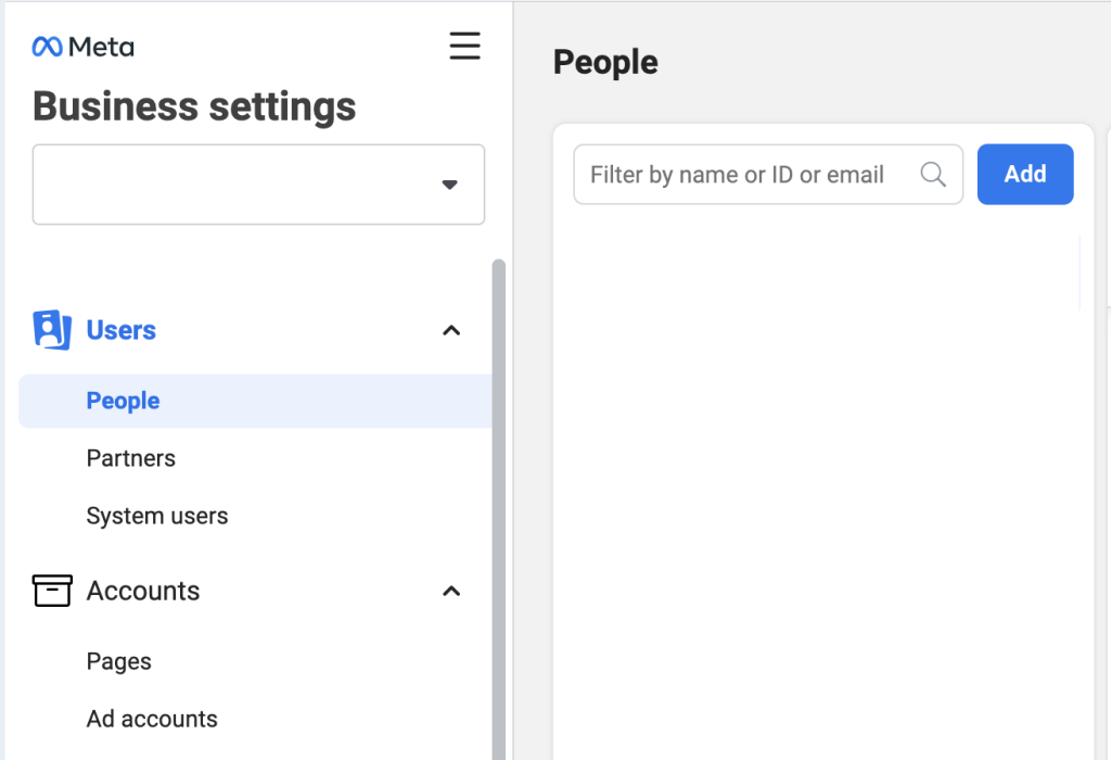 - Go to business settings and click “People” on the sidebar.