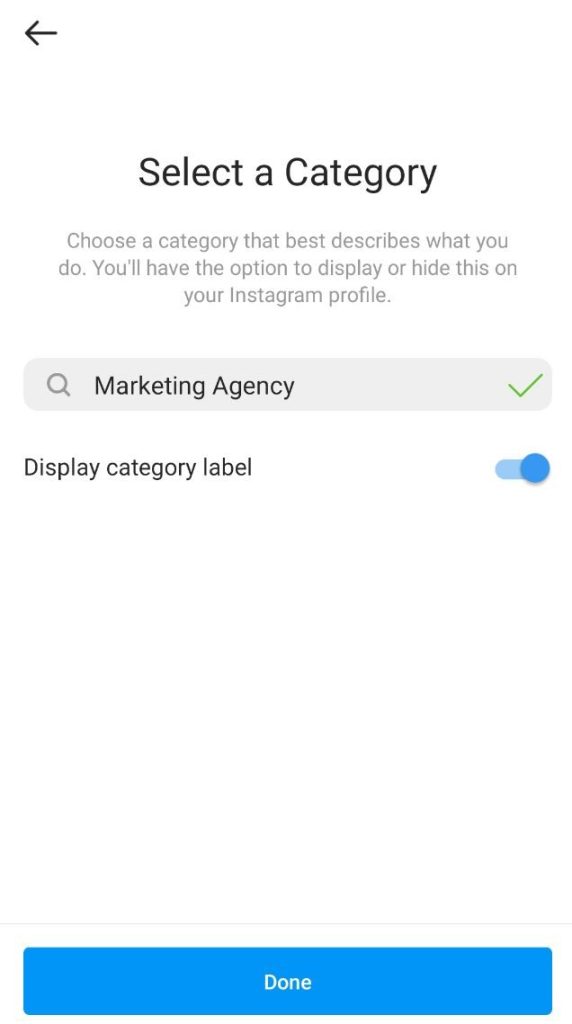 And for a Professional account, you get two choices – Business and Creator. Choose the relevant one and start creating content.
