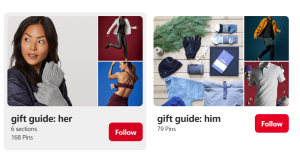 One of the best boards is “gift guide: him” and “gift guide: her” so you don’t get completely lost when trying to choose a present from the online store.