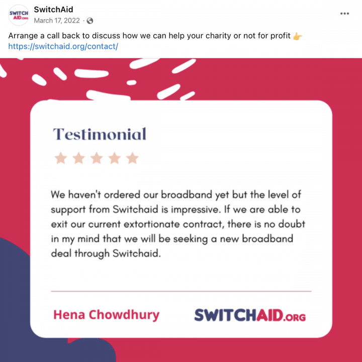 We have created professional, bespoke social media posts for many charities. See below for examples of social media posts for charities.