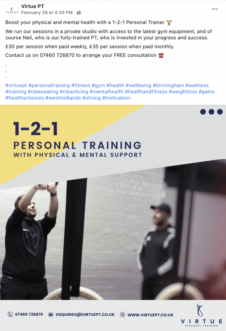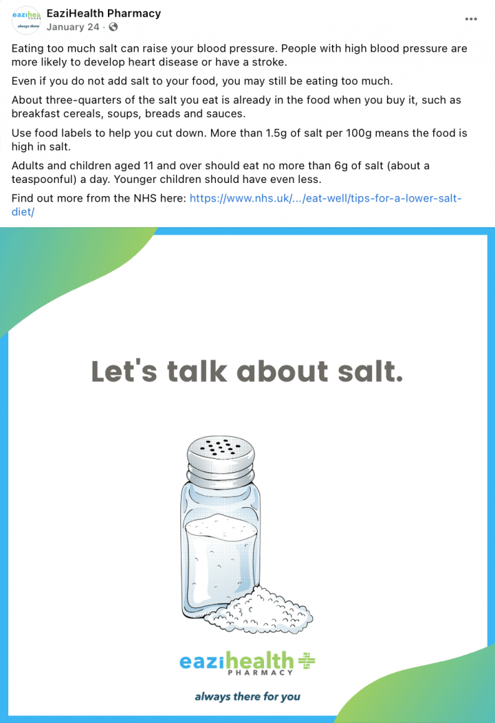 We have created professional, bespoke social media posts for many health and wellness businesses. See below for examples of social media posts for health and wellness.