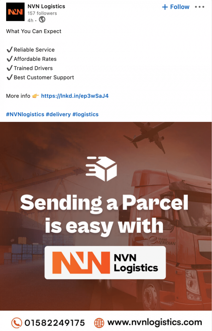We have created professional, bespoke social media posts for many logistics and supply chain businesses. See below for examples of social media posts for logistics and supply chain.