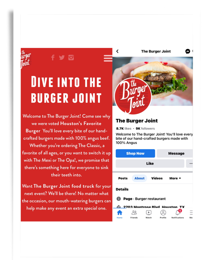 The Burger Joint’s Facebook page bio is a real-life example of a perfect brief introduction and setting the first impression right:
