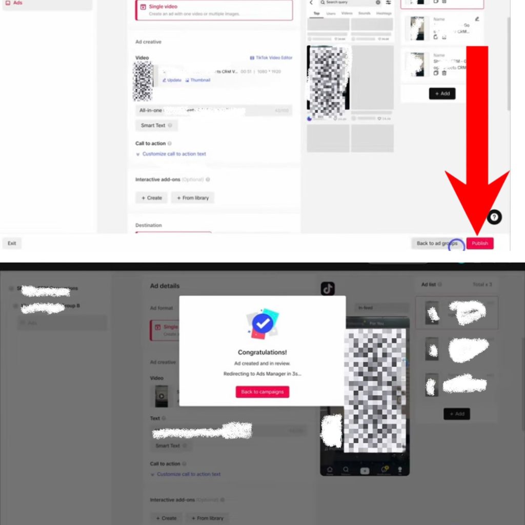 Once your ads are ready, click “publish”. You’ll see a congratulatory message informing you that your ad is in review. Moreover, add your payment details if prompted.