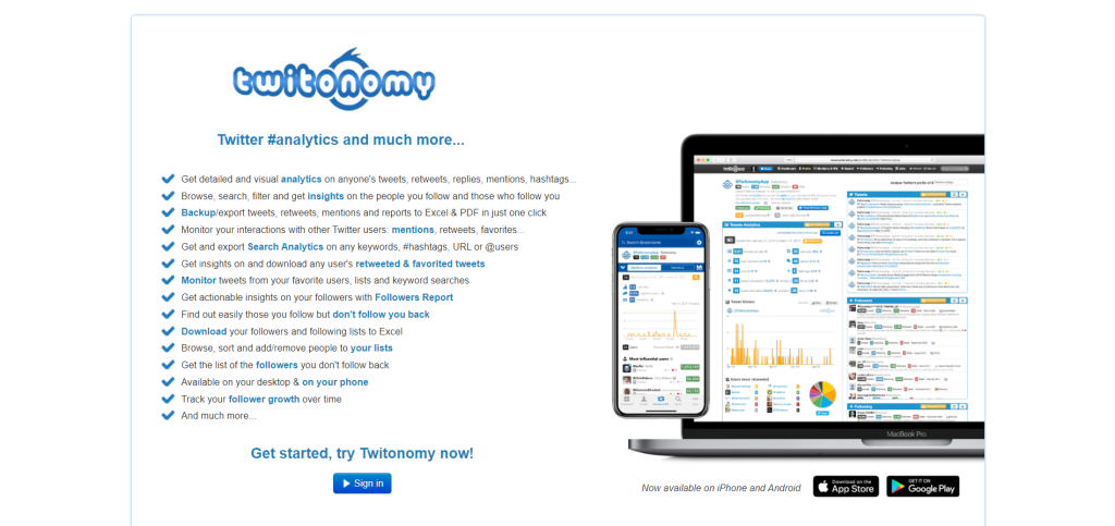 It is a powerful application that allows you to analyse your own and your rivals’ Twitter accounts using a variety of approaches.