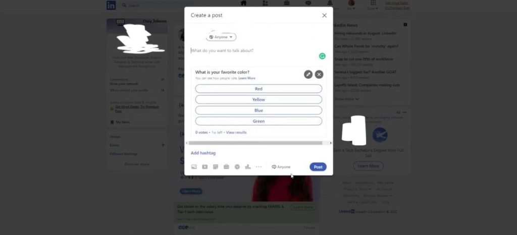 How to create a LinkedIn poll on a desktop.